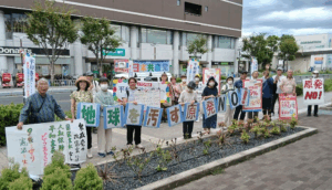 ・富田林、太子、河南、千早赤阪は富田林エコールロゼ前に29人。スピーチ7人、スタンディング、チラシ60枚、軍拡反対署名4筆と若者との対話もありました。