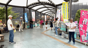 河南一斉宣伝は、5か所で取り組まれ、100人以上が参加しました。それぞれの場所で、違憲の集団的自衛権行使容認の閣議決定強行とその後の「安保3文書」による敵基地攻撃能力保有、「戦争する国づくり」を批判。軍拡ではなく、憲法を生かし、いのちと暮らしを守るため、改めて、草の根からの「市民と野党の共闘」を基礎に「国民的共同」を大いに広げようと訴えました。