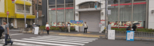・松原は松原駅前で20人でスタンディング。頑張ってと激励する人、横