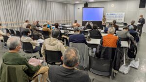 最後に「報告を通して東大阪には『魅力ある展示』ができる材料が豊富にあることが分かった」「市の展示や管理運営の考え方にも変化が生まれつつある」として市民宣伝、議会傍聴の強化、2度目の住民説明会の開催要請、などの当面の取り組みが参加者の拍手で確認されました。