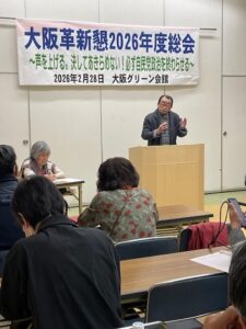 声を上げる。決してあきらめない!必ず自民党政治を終わらせる77名が参加し、大阪革新懇2026年度総会が開催される