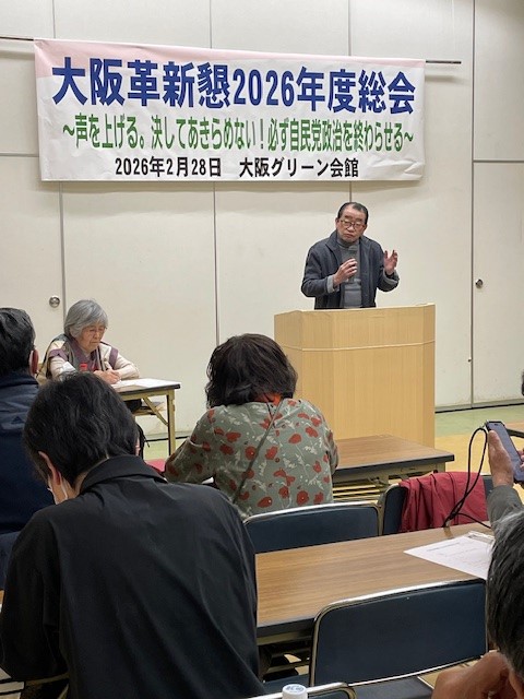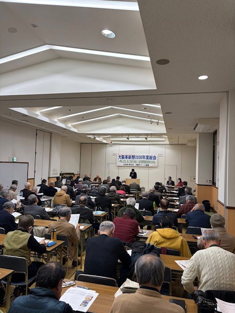 大阪革新懇2026年度総会が2月28日に大阪グリーン会館で開催され、77名の参加で成功しました。2月の総選挙で自民党が大勝したもとでも、「声を上げる。決してあきらめない!必ず自民党政治を終わらせる」として一年間の運動方針を確立しました。