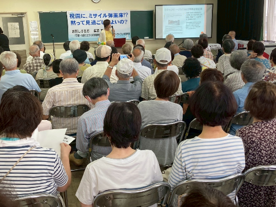 「祝園弾薬庫学習会」には、共同代表の呉羽真弓さんが80分ほど講演されました。当初予定していた椅子が足らず、四回も椅子を追加し、95名の方が熱心に、呉羽さんの話を聞いていました。参加者からは”詳しく聞くのは初めて、連帯して何かを一緒にしたい””今の現状にぴったりの講演会でした。知って声をあげることが大切だと思った”などの声が寄せられていました。なお、10月19祝園全国集会に、交野市からマイクロバスをしたてて参加することが決まりました。