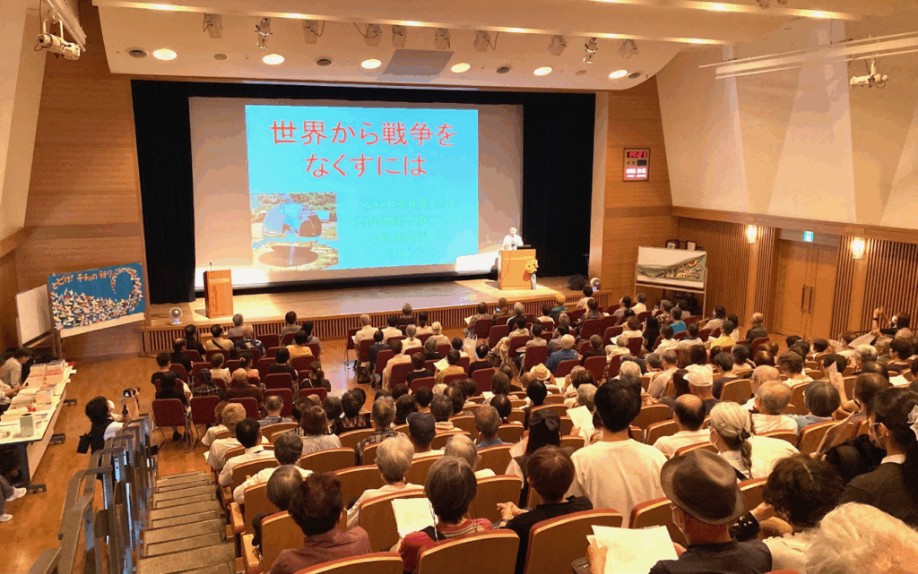 8月27日河内長野市民交流センターで「平和の花束を世界へ」をテーマに、第12回河内長野平和フェスタが開催され240人余りが参加しました。
